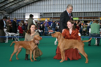 Nieuwsterug![]() Van een van de eigenaren in het buitenland ontvingen we goed nieuws! Op de Helsinki Winner 05 show werd Quodian's Pandur BOB en won hij zijn eerste CAC, Winner 05 en Junior winner 05. Hij heeft het dus super gedaan! Quodian's Pandur deed ook nog mee aan aan een andere grote show dat weekend. Op zondag won hij de titel Nordic Winner 05, Nordic Junior Winner 05 en BOB: 4 titels in 1 weekend. We zijn reuze trots op Pate en zijn Eigenaresse Hanna in Finland en zijn vol verwachting over zijn verdere carierre. ![]() Quodian's Pandur op de Helsinki Winner Show in Finland - (foto:P Kuusisto) ![]() Vandaag 15 december 2005 is Quodian's Hayfa ( Tessa) Nederlands Kampioen geworden op de Kerstshow van Wijchen. Tessa is een dochter van Bodohegyi Zsarnok en Princerdei Rizlingharcos Aliz. Bij deze mijn hartelijke felicitaties en dank aan de eigenaren Hetty en Renee Peeters . ![]() Winner Amsterdam! Jeugdwinner: Quodians Okos Winner reu + BOB: Jakabhegyi Vadasz Buda (broertje van Arasz) Jeugdwinster + Winster: Quodijins Catou Op de Winner 2005 , de belangrijkste tentoonstelling van Nederland waren in het weekend van 3 en 4 December maar liefst 12 Draadharen ingeschreven . Helaas was Int Kamp Quodian's Ivette absent in de werkhondenklas. Beste teef Jeugwinster en Winster werd Quodijin's Catou (Quodian's Jarda x Jakabhegyi Vadasz Arasz). Jeugdwinner : Quodian's Okos (Quodian's Esprit xFram od Smutne Ricky).... En nu komt het !! Beste reu en beste van het ras Jakabhegyi Vadasz Buda (eig: Jolanda Kamsteeg) ![]() ![]() Op 20 november 2005 heeft Bercsi (Komlosteri Bator) zijn laatste punt (CAC) gehaald hij is nu ook definitief Nederlands Kampioen . Onze dank aan ras keurmeester Mevr. Gerda Halff-van Boven . ![]() ![]() Op onze site willen wij ook graag aandacht schenken aan het jachtgebeuren rondom onze Vizsla's. Ik zal met enige regelmaat uitslagen , wetenswaardigheden , leuke foto's en een agenda van evenementen die u niet mag missen plaatsen. Ook op deze pagina's wensen wij u veel kijk en leesplezier. U vindt de link binnenkort rechtsboven in het scherm! ![]() De Jachtdag in Houthalen Belgie was een groot succes. Kijk voor meer informatie en foto's op: deze link ![]() ![]() Quodian's Ivette (Idi) is nu ook Internationaal Kampioen ![]() ![]() Q Kajusz slaagt voor zijn Cynophilia GG 1 met 277 punten en dus een uitmuntend . ![]() Quodians Kajusz doet mee aan de veldwerkwedstrijd in Fijnaard , hij behaalt in de Novice klasse een eerste prijs met de kwalificatie Goed , we zijn reuze trots nu ook Kajusz zich officieel een werkhond mag noemen . (Op naar het Internationaal kampioenschap) 08 Oktober is ook de dag dat ik terug kom uit Hongarije met Garamparty Orsi , een in Slowakije gefokt teefje , met een prachtige stamboom en ook div mooie veldwerk resultaten , Met Orsi Hoopte ik de werkhonden kant in onze lijnen te versterken , maar een verschrikkelijk ongeluk overkomt ons , in een onbewaakt ogenblik ontsnapt Orsi na slechts een week bij ons te zijn uit de tuin , al onze pogingen om haar terug te vinden hebben tot op vandaag geen resultaat opgeleverd , ik ben ontroostbaar , het enige wat ik nu nog kan hopen is dat zij door iemand in huis is genomen . en gelukkig is ![]() het voorste hondje op de foto is Orsi mijn vermiste hondje ![]() Quodian's Esprit bevalt van 8 pups , dit nestje was ongepland , is tot stand gekomen in onze vakantie toen Udo thuis in een onbewaakt ogenblik de deur naar het hondenverblijf heeft geopend en daar Esprit vond die hem hunkerend verwachtte . ![]() Jubileum week van de Ned Vizsla week ivm 30 jarig bestaan . Ondergetekende was mede verantwoordelijk voor de organisatie iets wat ik met veel plezier heb gedaan , en heb al het goede wat ik geinvesteerd heb dubbel en dwars terug gekregen het was een onvergetelijk evenement . Kijk voor foto's en uitslagen op deze link. (championat 'd europe, werktest, clubmatch 2005) ![]() Show Maastricht : Brioche word beste teef en is nu definitief Ned Kampioen. Okos wint zijn eerste BOB en heeft zijn tweede CAC nu binnen ![]() . Gyermat Erdei Csausz (Ragnolds kennels UK) brengt een bliksem bezoek via Nederland om in Duitsland het teefje Emma v Holtwickerfurst te dekken , vandaag 2 november zijn de pups uit deze combinatie geboren , 7 reutjes en 4 teefjes zijn het resultaat ![]() Clubmatch Belgische Vizsla club , Komlosteri Bator word beste reu vd clubmatch , Brioche res Beste teef . Met veel plezier bezoeken wij altijd de Clubmatch in Belgie , de sfeer en de locatie is geweldig . ![]() Het is een lange mooie zomer geweest waarin wij voor het eerst van ons leven zonder honden op vakantie geweest zijn , het is wel en niet bevallen , veel van onze puppie eigenaren hebben ook na hun vakantie ons weer verblijd met leuke , grappige en ontroerende vakantie foto's , mijn hartelijke dank , en blijf vooral sturen . ![]() ![]() Op 14 augustus hebben wij Okos weer opgehaald uit Hongarije , na een intensive training door mijn vriendin Zsofia is hij geslaagd voor zijn T.A.N in Hongarije (natuurlijke jacht aanlegtest). De test bestond uit de volgende onderdelen: